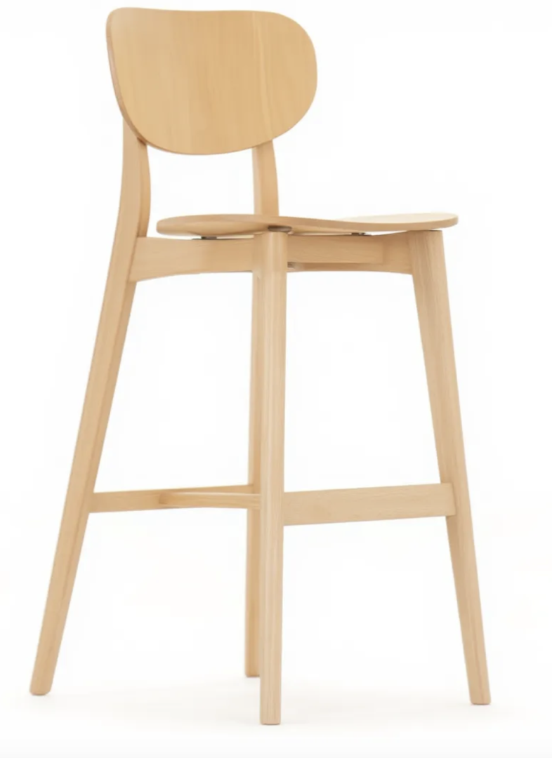 Siedzisko i oparcie wykonane są z forniru bukowego, a ochraniacz na podnóżek ze stali nierdzewnej zwiększa wygodę i chroni przed zużyciem.