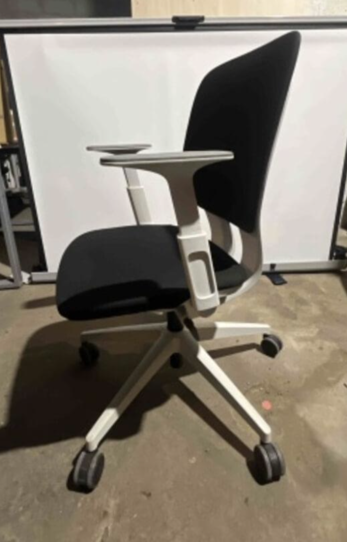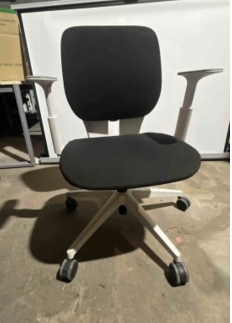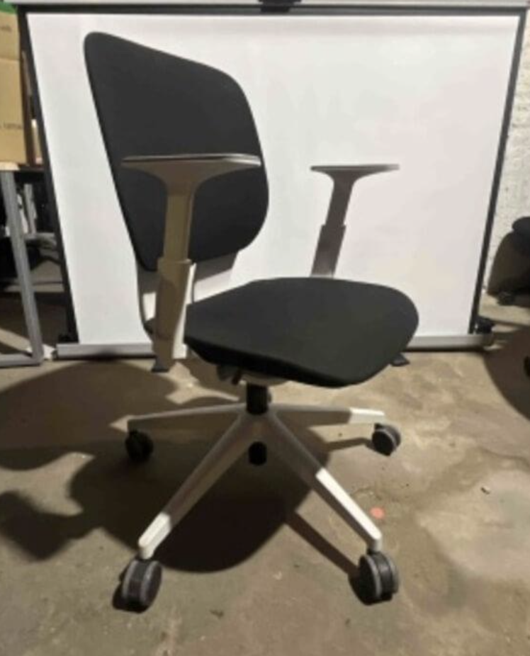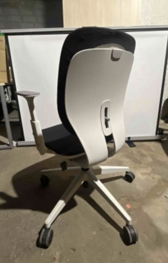Używany fotel LIM Less Is More, szary, z białą bazą to funkcjonalny i estetyczny mebel o minimalistycznym designie.