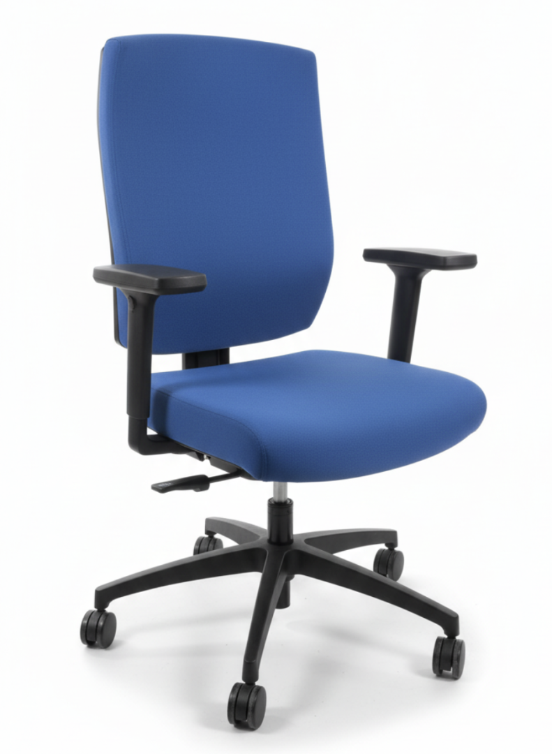 Używane obrotowe krzesło biurowe JUST EVO OPERATOR Dauphin, granatowe indygo łączy komfort, ergonomię i nowoczesny wygląd.
