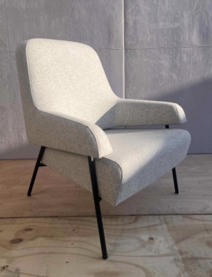 Używany fotel Noti GAP GA/1/L jasno szary, czarne metalowe nogi