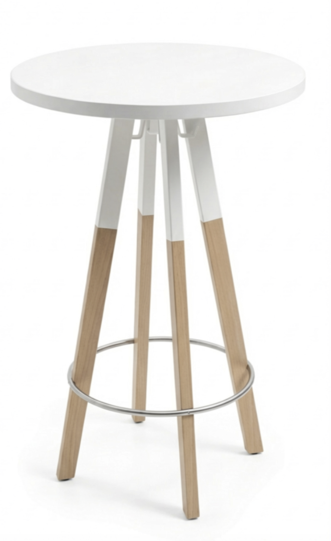 Używany stół barowy SPIN Wood marki Bejot to praktyczny i estetyczny mebel, idealny do stref barowych, kuchni, biur oraz przestrzeni coworkingowych.