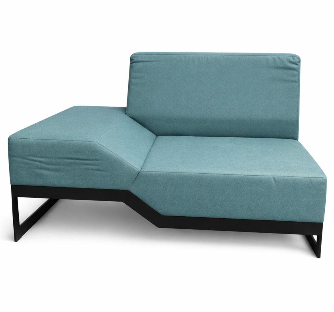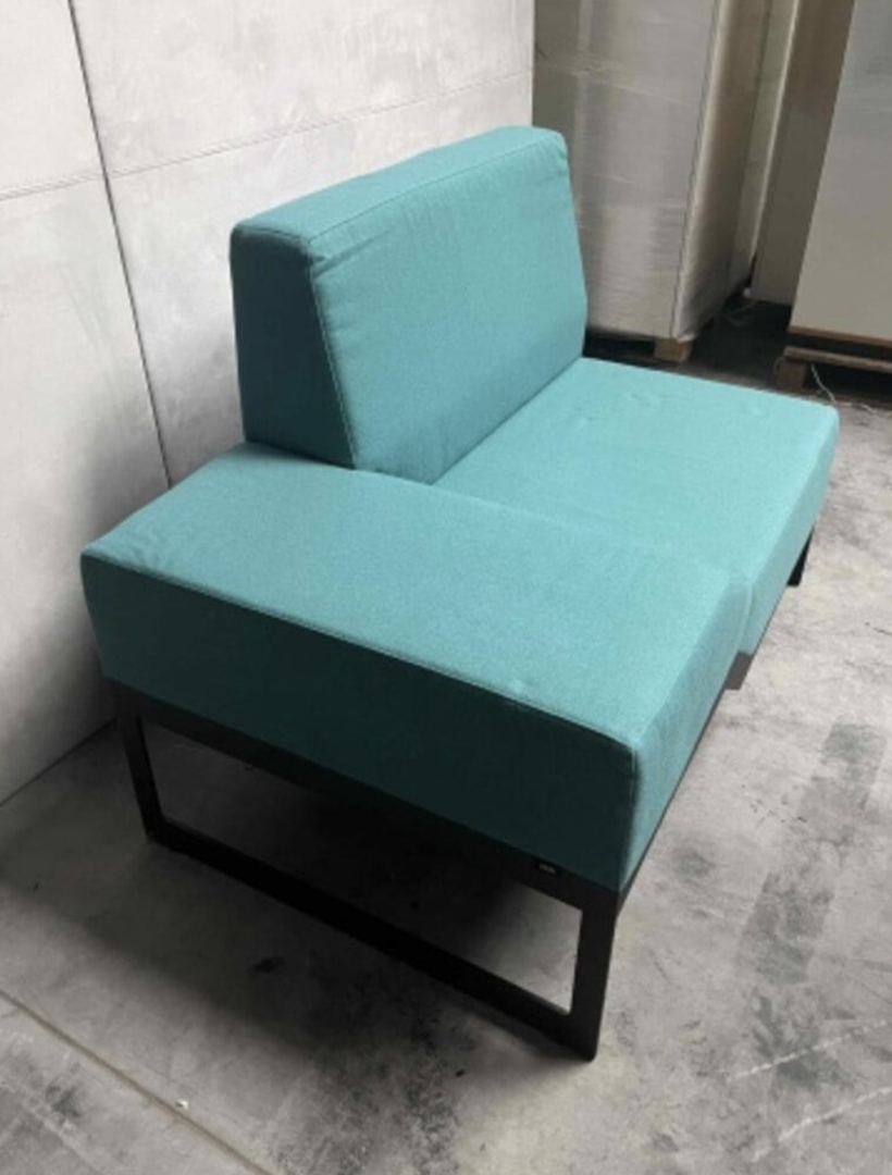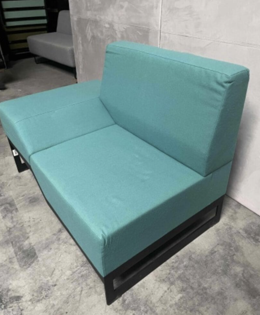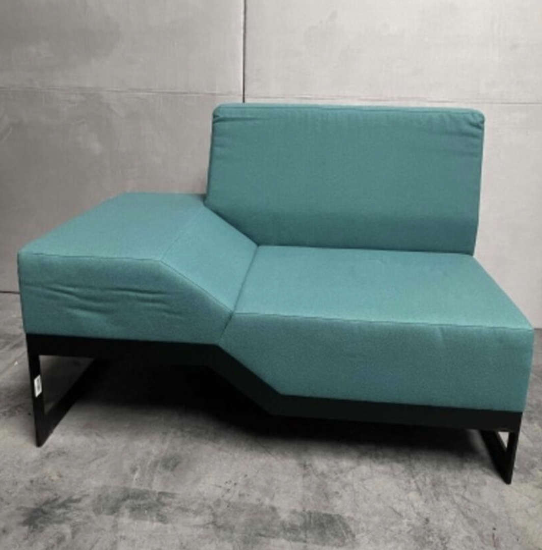 Używana sofa Belong Vank w wersji lewej to komfortowy mebel wypoczynkowy do salonu, stref coworkingowych, poczekalni lub strefy lounge. Tapicerka w turkusowym kolorze jest miękka i przyjemna w dotyku, zapewniając wygodę podczas siedzenia.