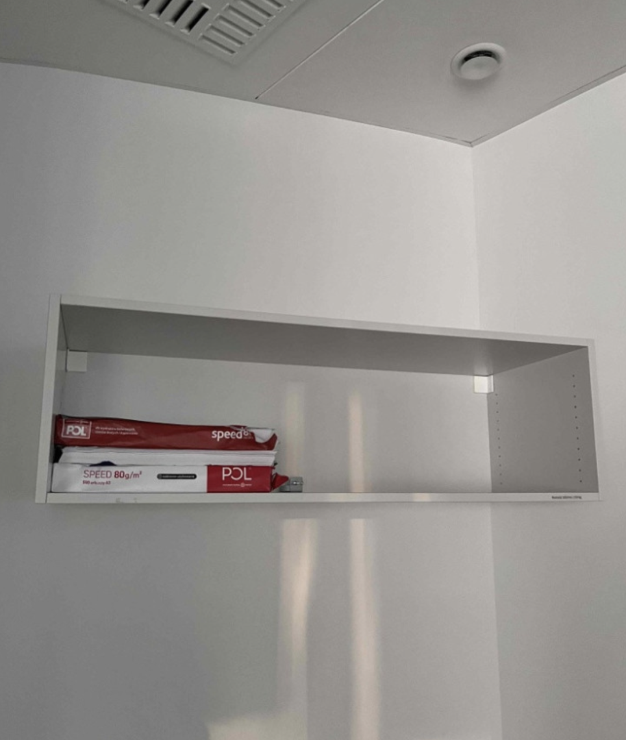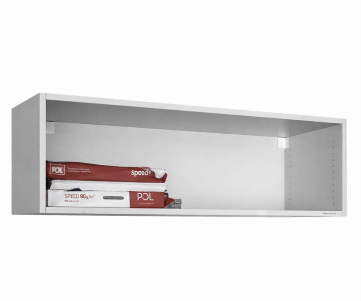 Półka wykonana jest z trwałego materiału, odpornego na codzienne użytkowanie. Stabilna konstrukcja umożliwia przechowywanie cięższych przedmiotów, a minimalistyczny, biały design pasuje do nowoczesnych wnętrz biurowych i domowych.