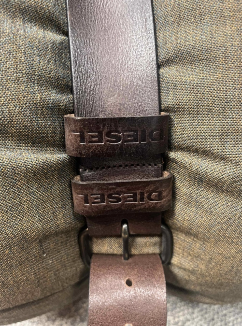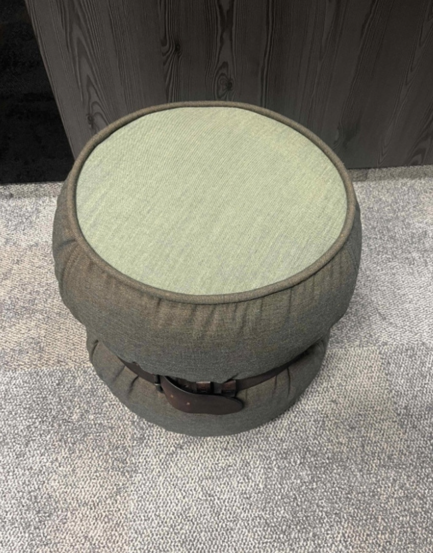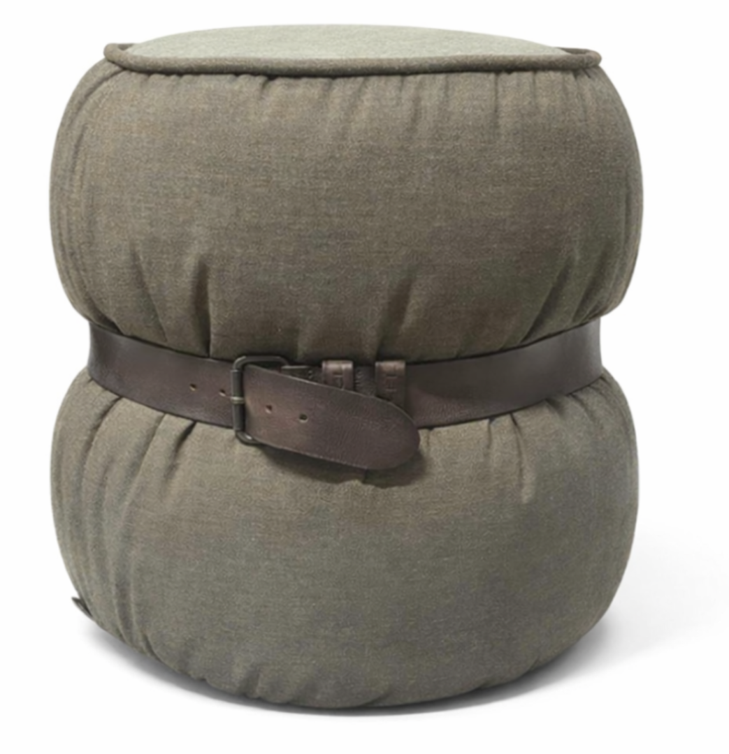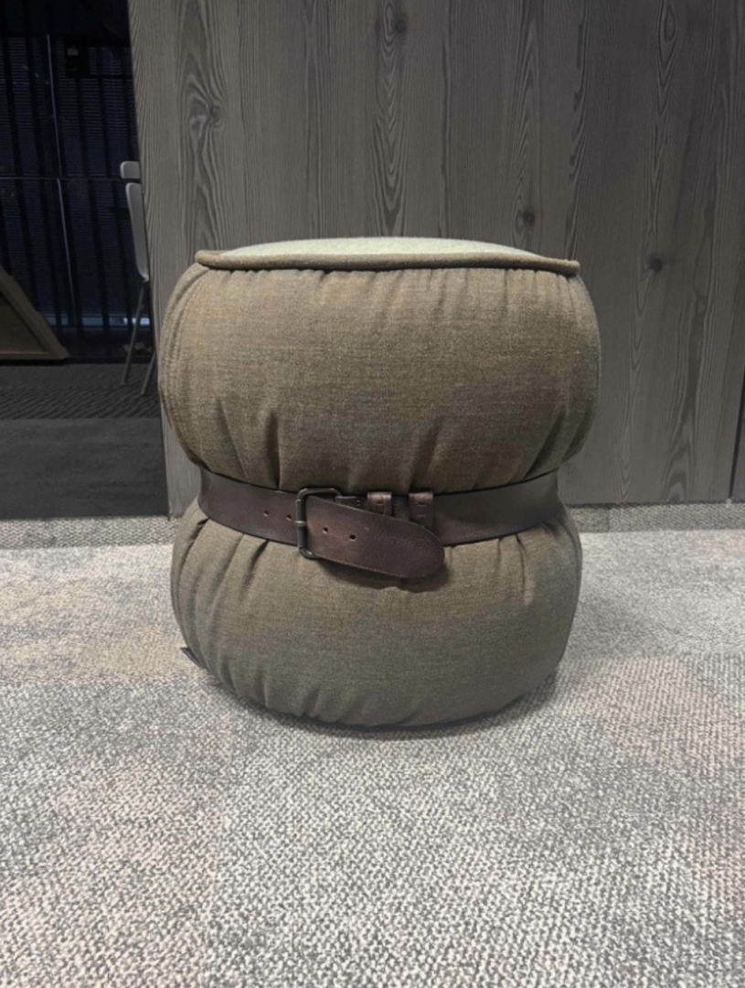 Używana pufa zielona Moroso z paskiem skórzanym Diesel brązowym