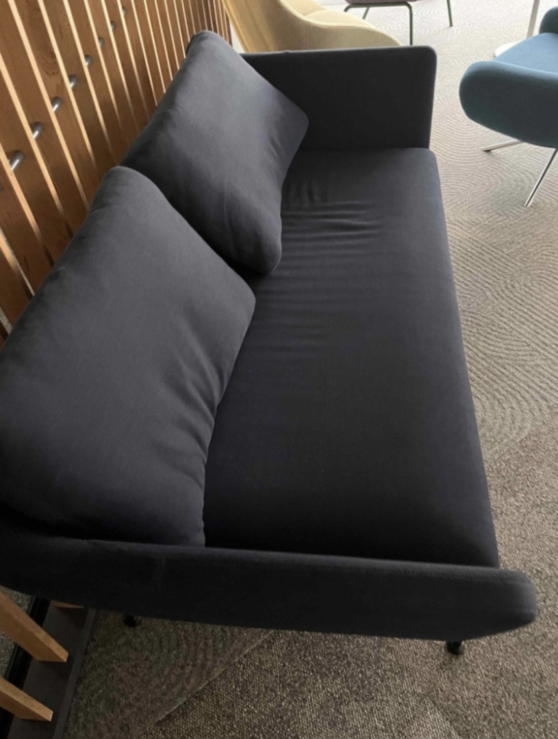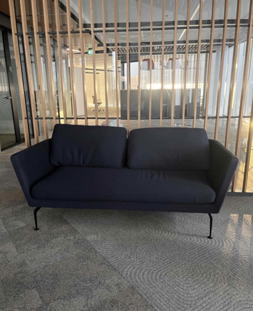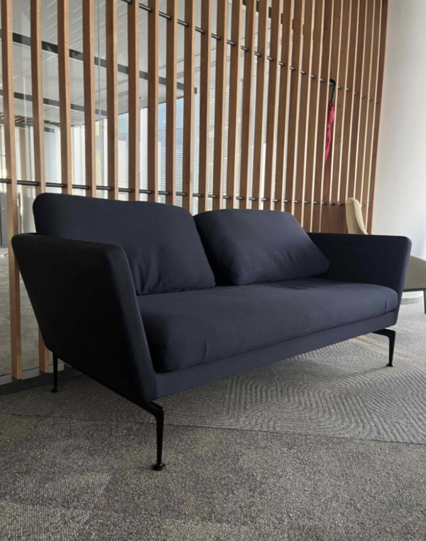 Używana sofa dwuosobowa Vitra Suita ciemnogranatowa to designerski i komfortowy mebel idealny do salonu, stref relaksu i przestrzeni komercyjnych. Minimalistyczna forma, wysokiej jakości materiały oraz charakterystyczna konstrukcja sprawiają, że sofa jest elegancka i komfortowa, a jednocześnie stanowi estetyczny element nowoczesnych wnętrz.