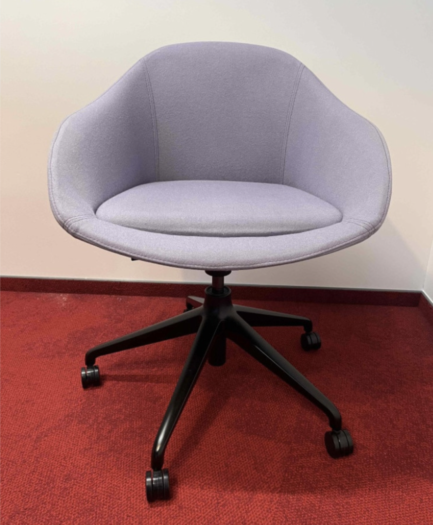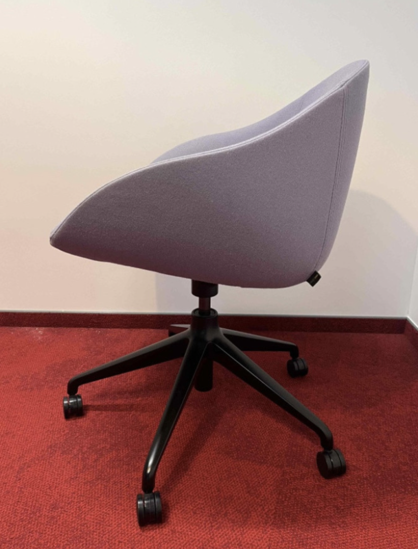 Używane krzesło konferencyjne / biurowe Naughtone Always fioletowe to obrotowe krzesło na kółkach z tapicerowanym siedziskiem i oparciem.
