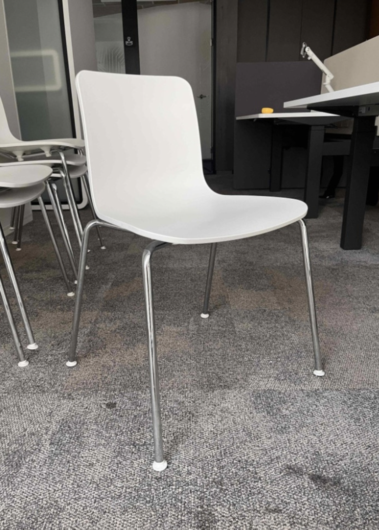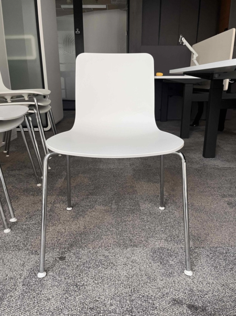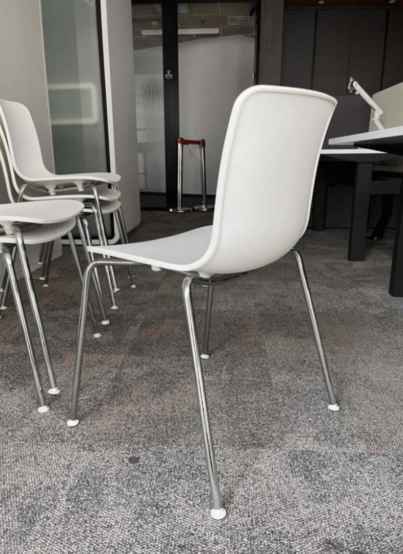 Używane krzesło HAL Vitra białe sztaplowane to nowoczesne i wszechstronne siedzisko do domu, biura i przestrzeni publicznych.