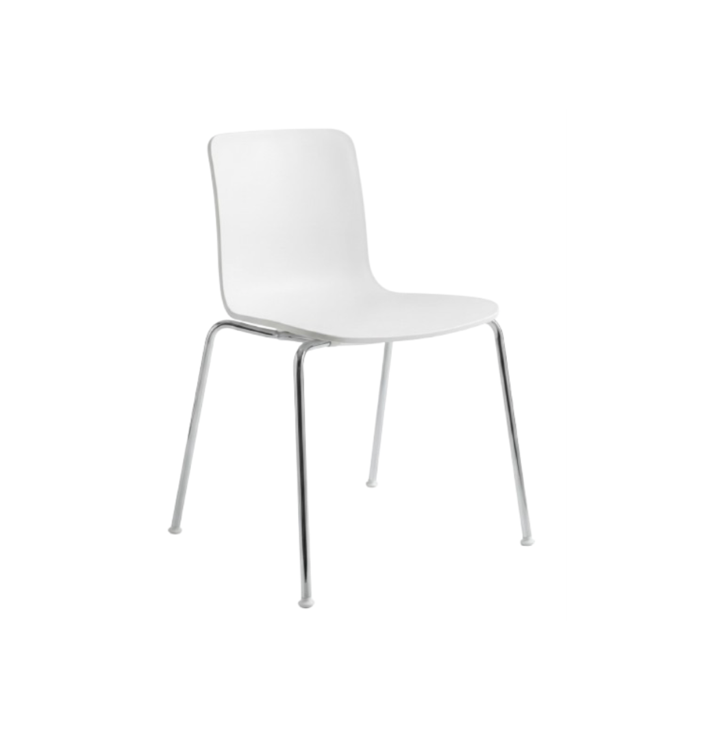 Krzesło HAL Vitra w białym kolorze z chromowanymi nogami łączy lekkość formy z trwałością i wszechstronnością.