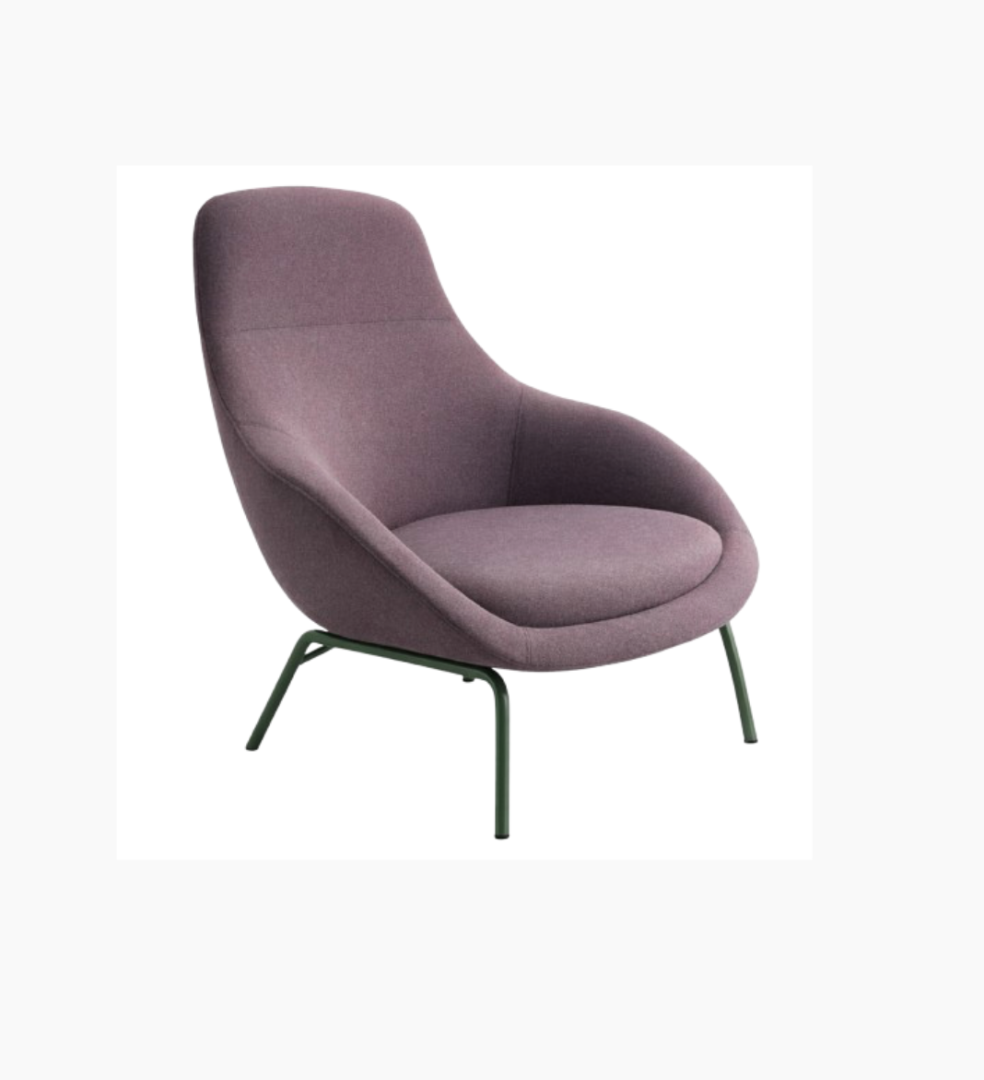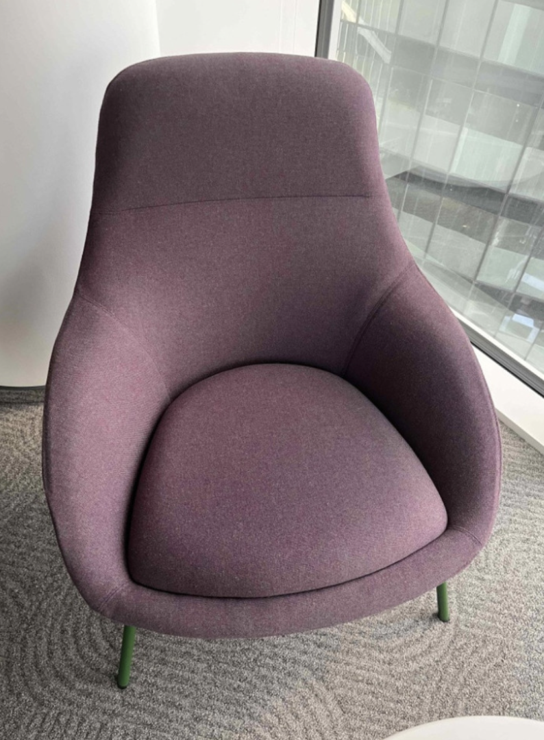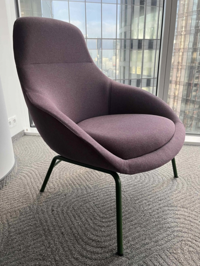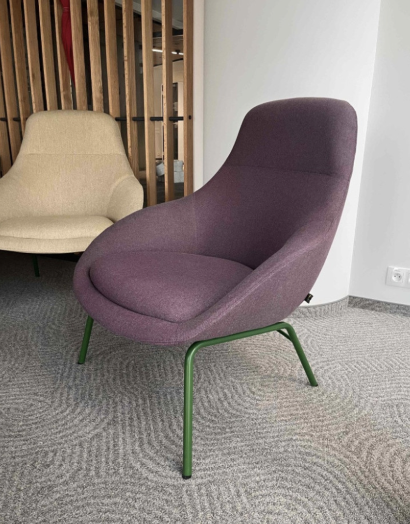 Używany fotel Always Lounge Chair marki Naughtone fioletowy to eleganckie i wygodne siedzisko do domu, biura i przestrzeni publicznych.