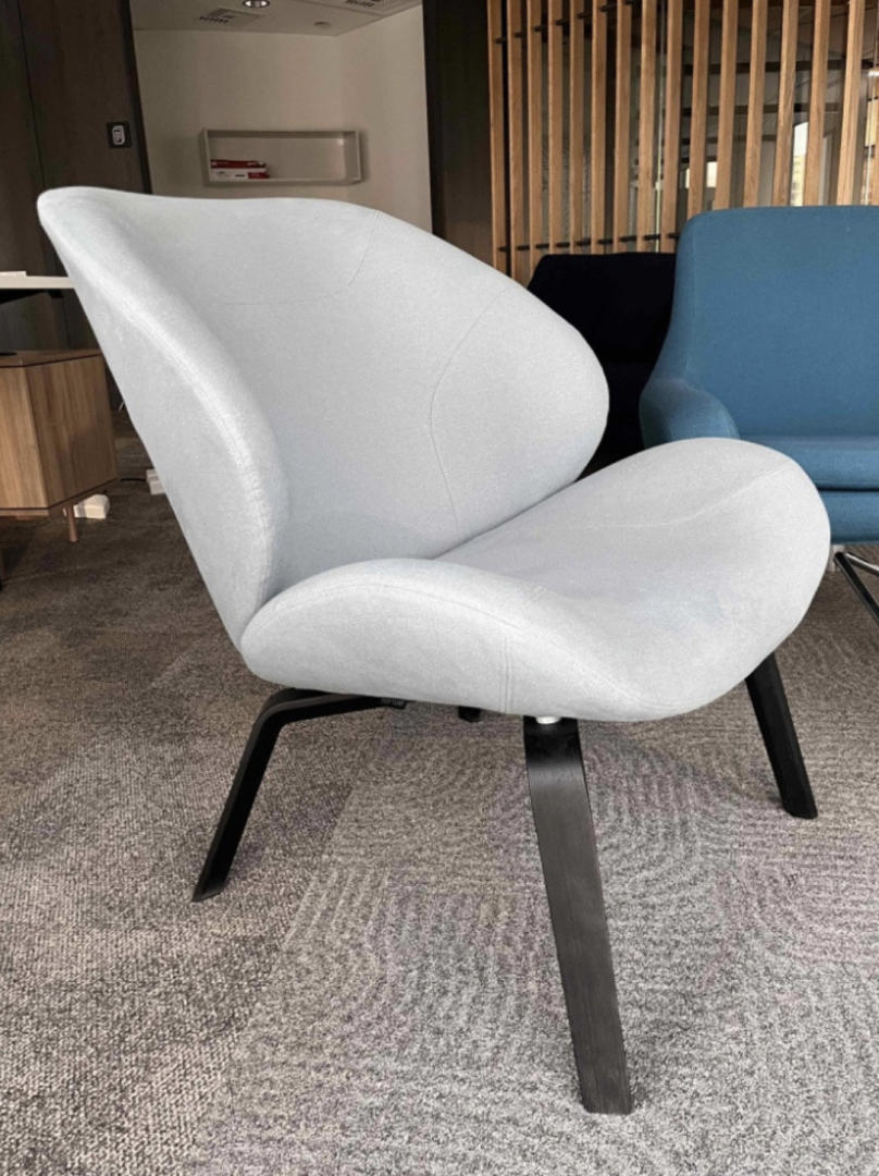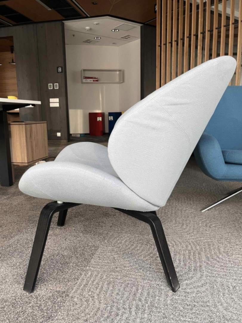 Używany fotel Eden Softline jasnoniebieski to eleganckie i wygodne siedzisko do domu, biura i przestrzeni publicznych.