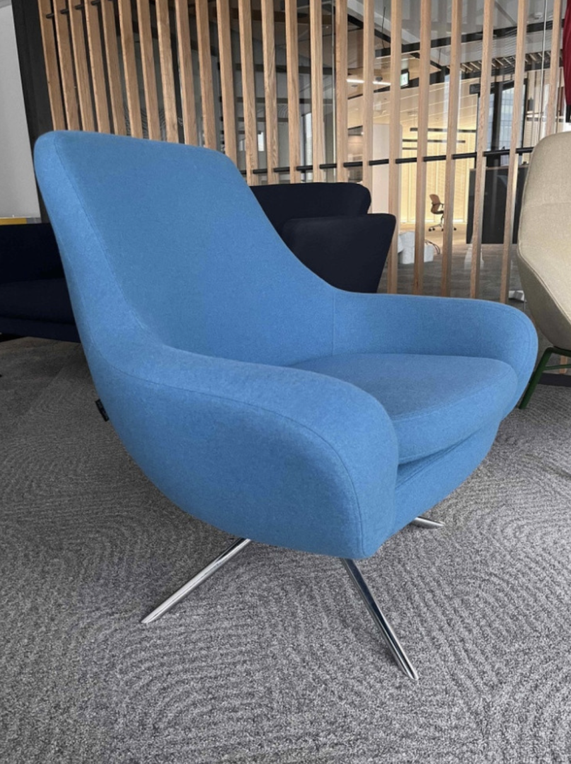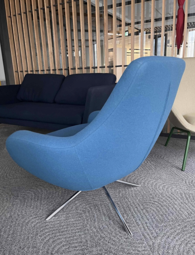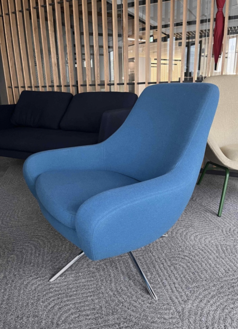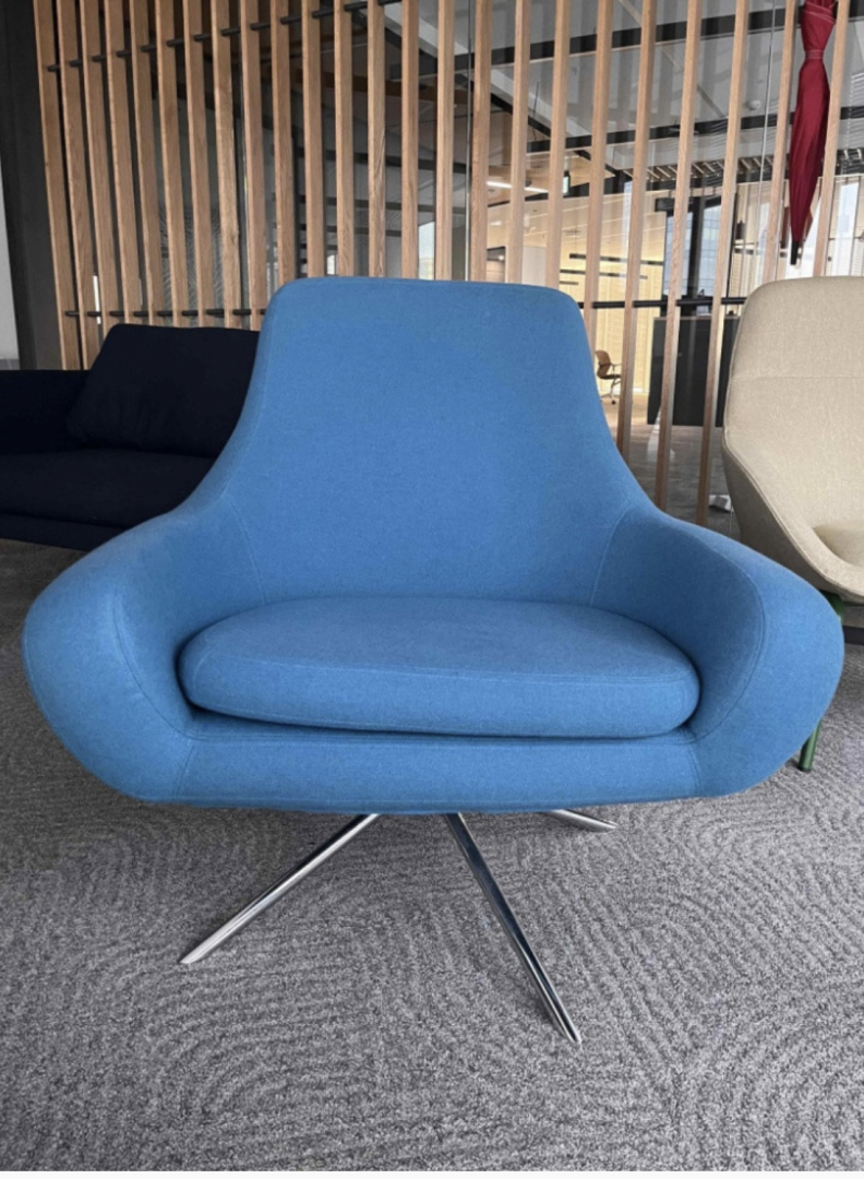 Używany fotel Noomi Softline granatowy obrotowy to wygodny i funkcjonalny fotel wypoczynkowy o nowoczesnej formie.