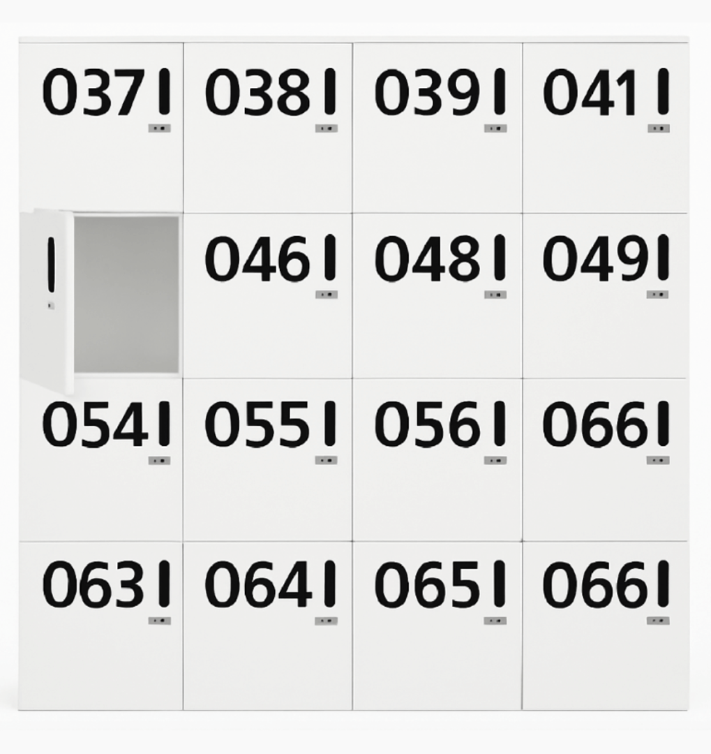 Wysoki, ponumerowany loker biurowy to praktyczny mebel do biura, przestrzeni coworkingowej lub recepcji. Idealny do przechowywania dokumentów, akcesoriów pracowników lub osobistych przedmiotów, łączy funkcjonalność z estetycznym, minimalistycznym designem.