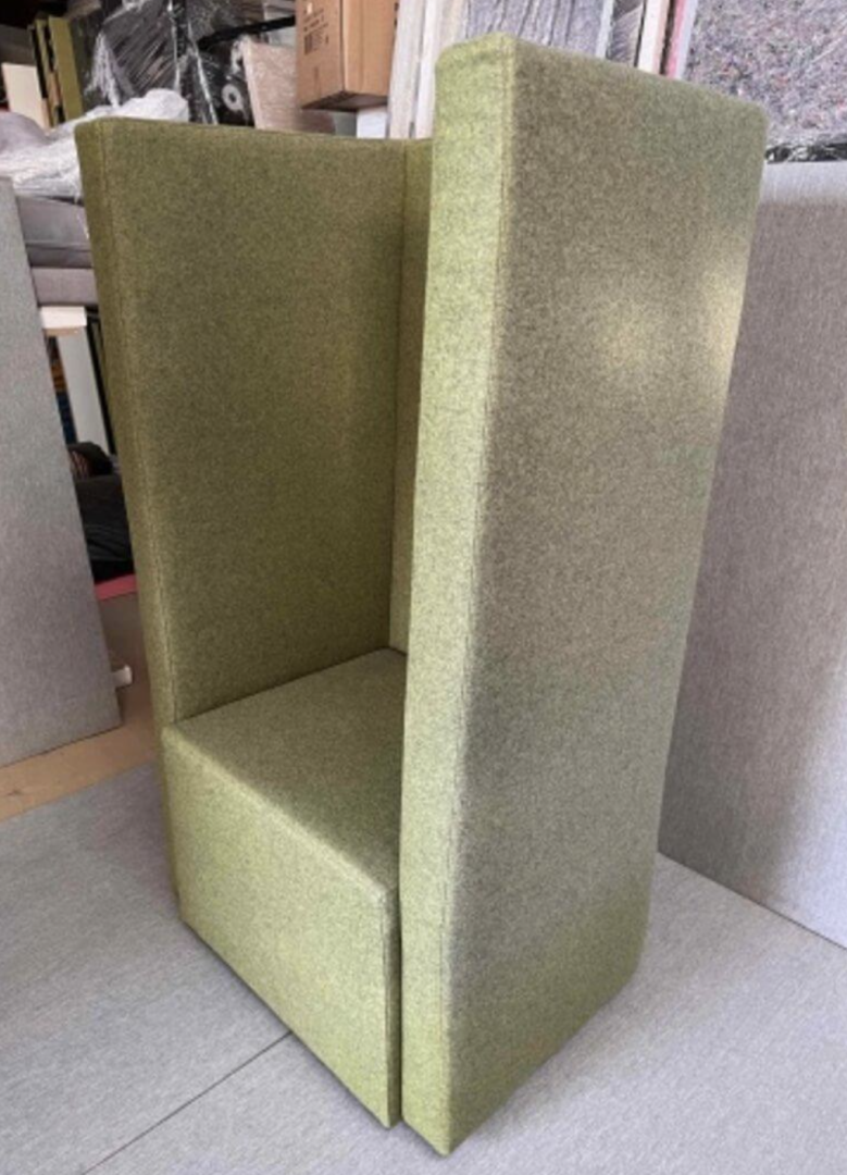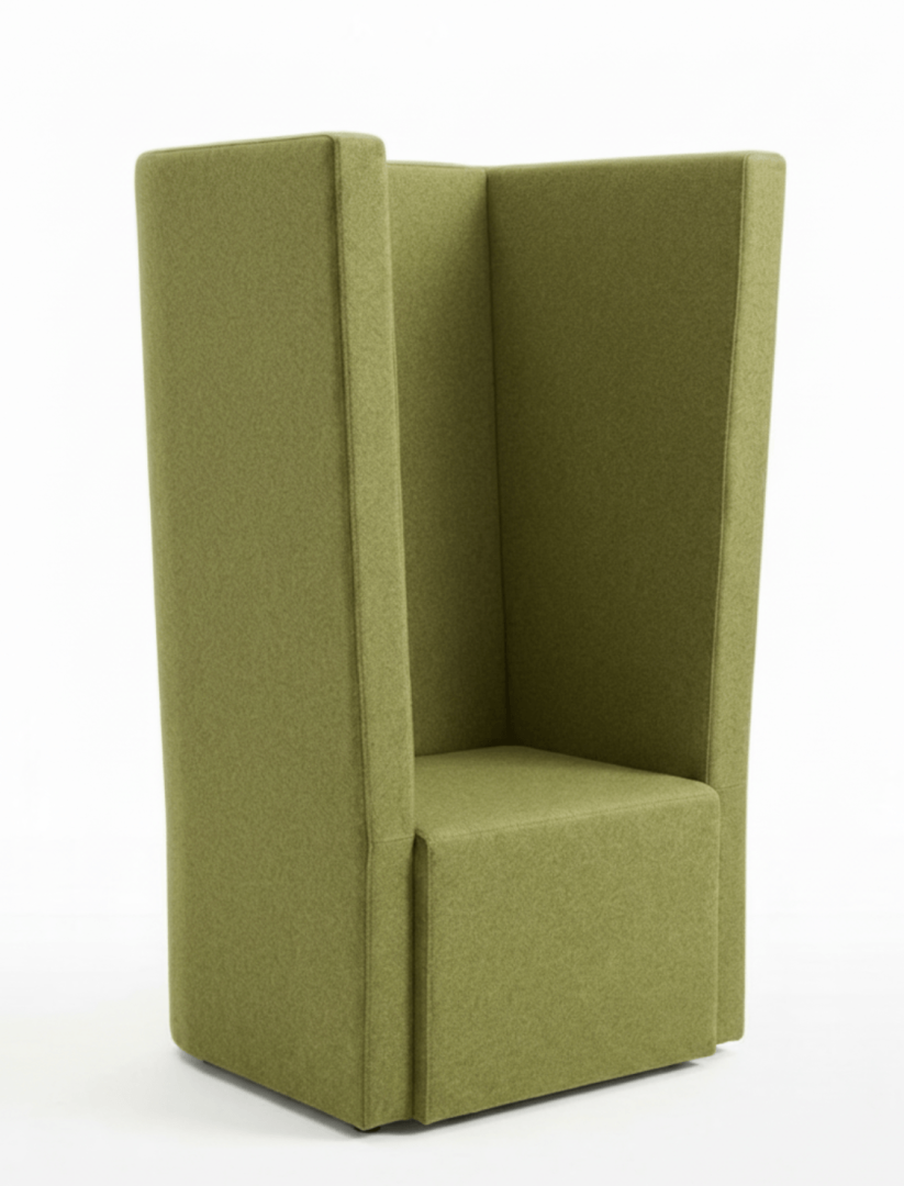 Wysokie oparcie pomaga wydzielić bardziej prywatne miejsce do odpoczynku lub pracy, a solidna konstrukcja i przyjemna tapicerka zapewniają trwałość i wygodę.