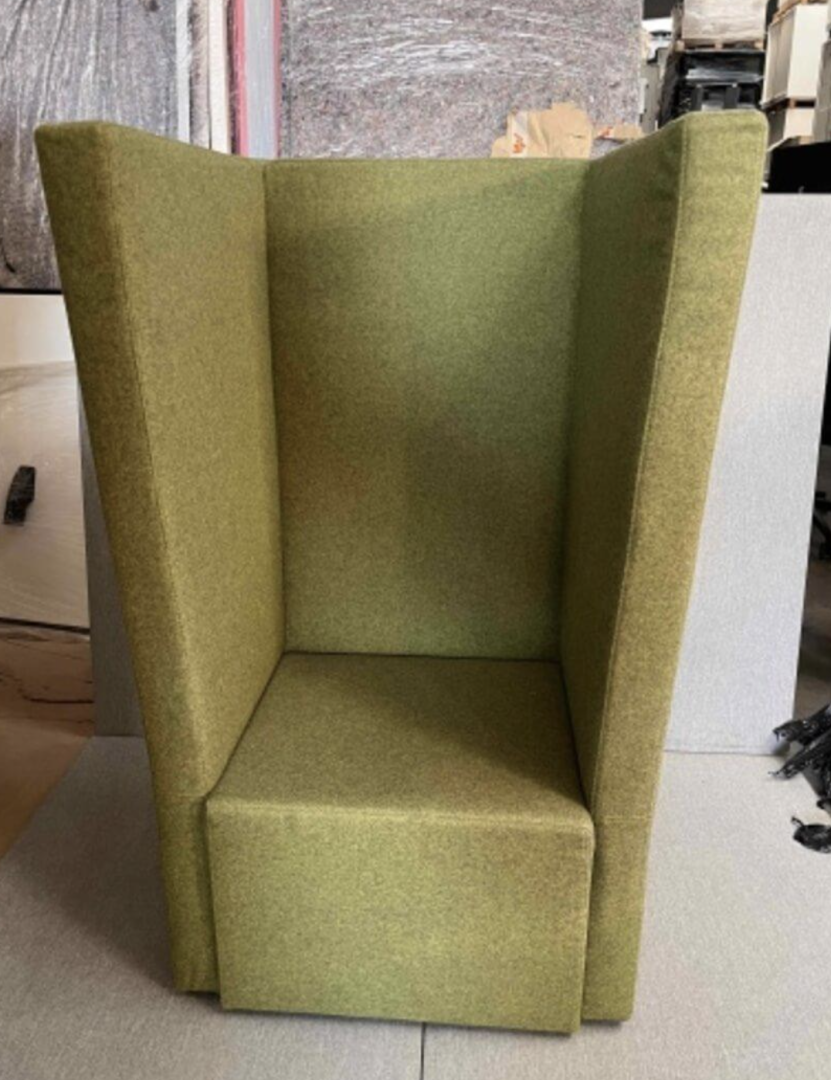 Używany wysoki fotel z kolekcji Hussar marki Noti to nowoczesny i wygodny mebel tapicerowany, zaprojektowany specjalnie do przestrzeni takich jak biura, lobby, poczekalnie, open space czy salony domowe.